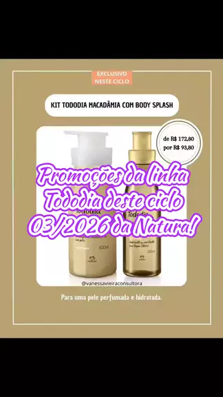 ✨ Promoções da Linha Tododia da Natura – Ciclo 03/2026 ✨ Aproveite o cuidado completo para o corpo com as ofertas da linha Tododia da Natura! Tem kit hidratante + body splash de macadâmia, kit sabonete com óleo bifásico, hidratantes sorbet nas fragrâncias acerola e hibisco, manga rosa e água de coco e amora e flor de pêssego, além de kits de sabonete líquido com refil, chá de camomila e lavanda e combos especiais com 2 e 4 caixas de sabonetes. Link na minha bio. #Ciclo03 #Natura #Tododia