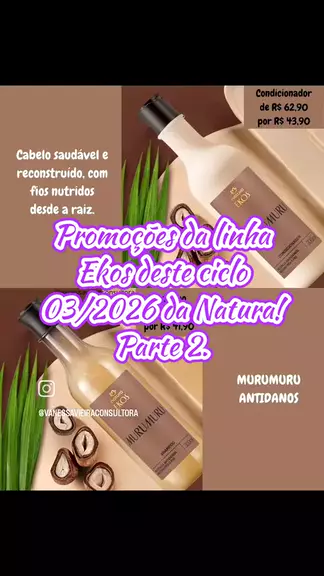 Promoções Linha Ekos – Ciclo 03/2026 da Natura. Neste ciclo tem trio de creme para mãos de castanha, polpa esfoliante, colônia frescor, creme corporal e óleo trifásico de castanha, além de caixa de sabonetes massageadores, creme corporal de andiroba e kit de sabonete líquido para o corpo + refil de andiroba. Hidratação intensa, nutrição e cuidado completo para o seu dia a dia! 🌿💛 Link na minha bio. ✨ #Ciclo03 #Natura #Ekos #Ofertas #VanessaVieiraConsultora