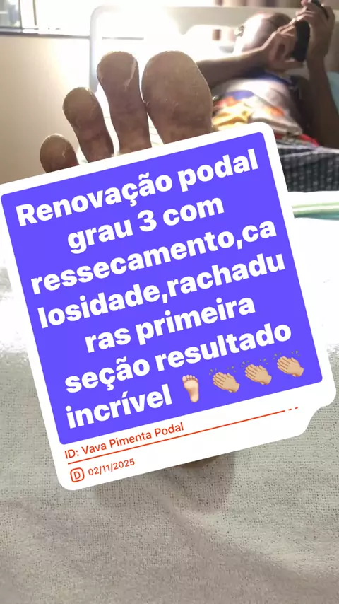 📌 O que é renovação podal? É o processo de troca/descamação da pele dos pés, quando a camada superficial está se renovando. 📊 Grau 2 geralmente significa: Descamação moderada, podendo apresentar: • Pele soltando em placas médias • Ressecamento evidente • Pequenas fissuras superficiais • Leve ardor ou coceira • Sensibilidade ao caminhar Ainda não é grave, mas já precisa de cuidado para não evoluir para rachaduras profundas (grau 3)#Renovacaopodal #pes #estetica #calosidade #VIRALIZAR
