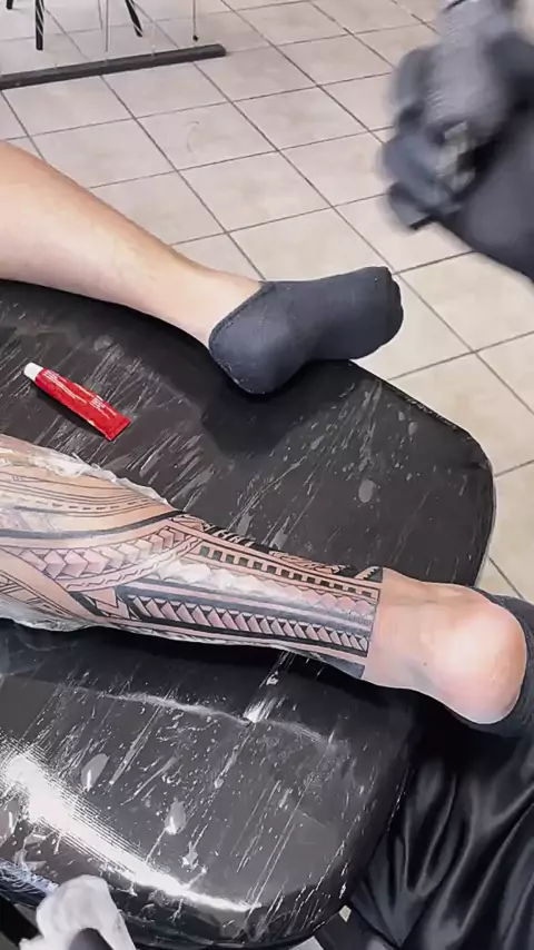 Começando agora o fechamento da parte de trás da perna. Traço por traço, o Maori vai tomando forma e ganhando presença. Não é só desenho… é identidade, força e respeito à cultura. #fechamentodeperna #tattooprocesso