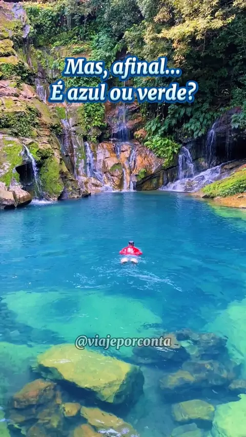 Afinal, a água é azul ou verde? 🤣💚 Bom, o nome oficial é POÇO AZUL e fica na Chapada das Mesas, em Riachão, no Sul do Maranhão. Lindo demais 💙 #viagem #natureza #azul #cachoeira #turismo