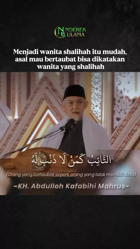 Menjadi wanita shalihah itu mudah, asal mau bertaubat bisa dikatakan wanita yang shalihah. ~KH. Abdulloh Kafabihi Mahrus "Dunia ini ibarat perhiasan, dipenuhi gemerlap harta dan keindahan yang menipu pandangan mata. Namun sebaik-baiknya perhiasan yang menenangkan dan lebih berharga ialah wanita yang shalihah" #khkafabihimahrus #lirboyo #nderekulama #wanitasholehah