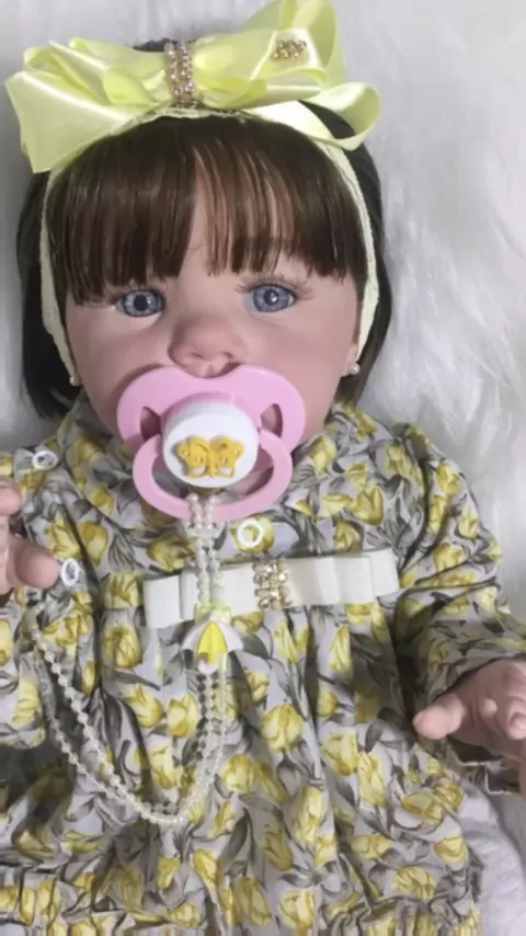 Linda Reborn 50cm,corpo de silicone macio e articulado,Peso 1.9kg a 2kg.Parece um bebe real com: Manchinhas de frio Veias aparentes Unhas com francesinha Cabelinhos colocados fio a fio O corpinho inteiro é de silicone macio. Vai para sua casa com: Fraldinha,Uma linda roupinha, podendo variar a estampa e modelo de acordo com o estoque mas mantendo a mesma qualidade,Kit com escova e pente Faixa de cabeça,Chupeta magnética com pendurador de pérola,Mamadeira #Reborn #presente #boneca