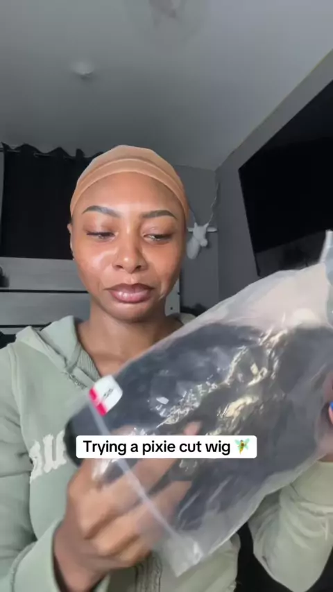 Primeira vez tentando uma peruca pixie cut, o que você vai pensar kkk? # pixiecutwig # pixiecut # shortwig # pixiewig # curlypixie # シ # curlyhair