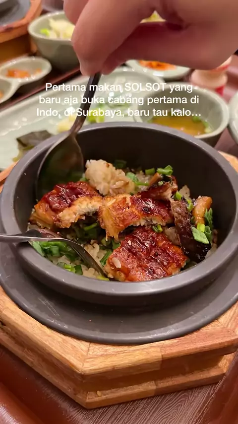 Pot rice cabang Indo pertama ada di Surabaya. Kalo yg best seller di Seoul yg beef, yg di Sby malah eel yg best seller. Aku juga tim eel. 💪