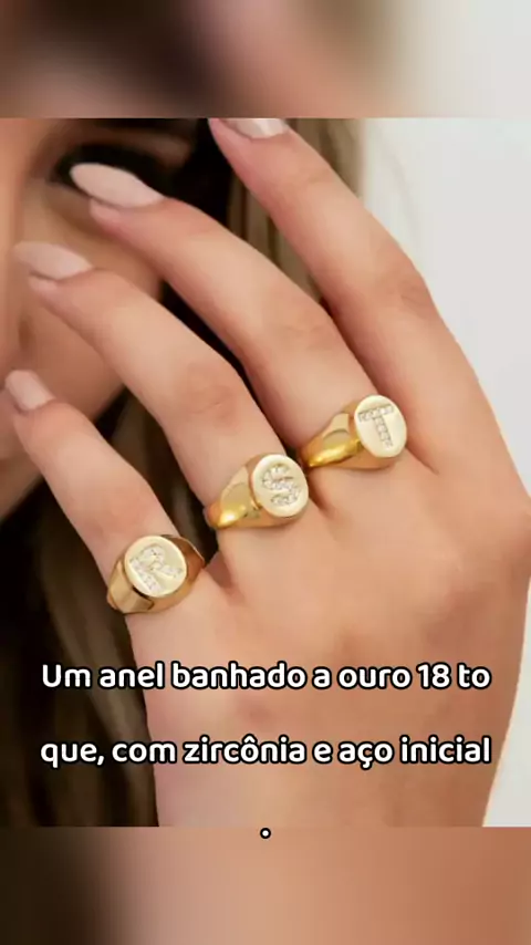 Anel com a sua inicial: o toque de brilho que faltava! #anelpersonalizado #banhadoaouro18k #modafeminina #presenteperfeito #acessoriosfemininos