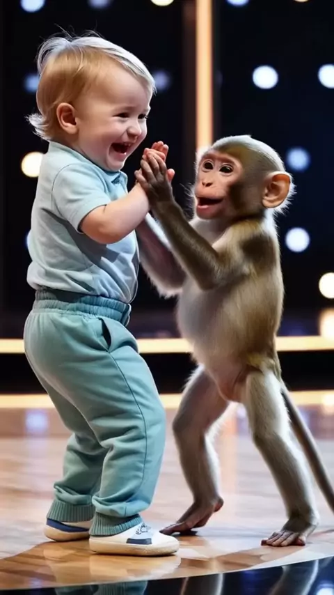 Bebê e macaco dançando #bebe#baby#got#danca#animais#bebefofo