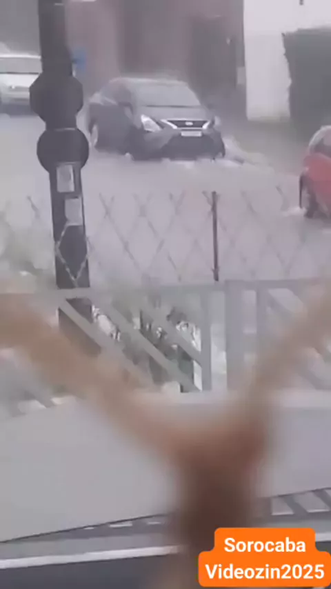 Carro se agarra em para-choque, para não ser arrastado pela enchente . #sorocaba #Chuva #enchente #MUITACHUVA #foryou