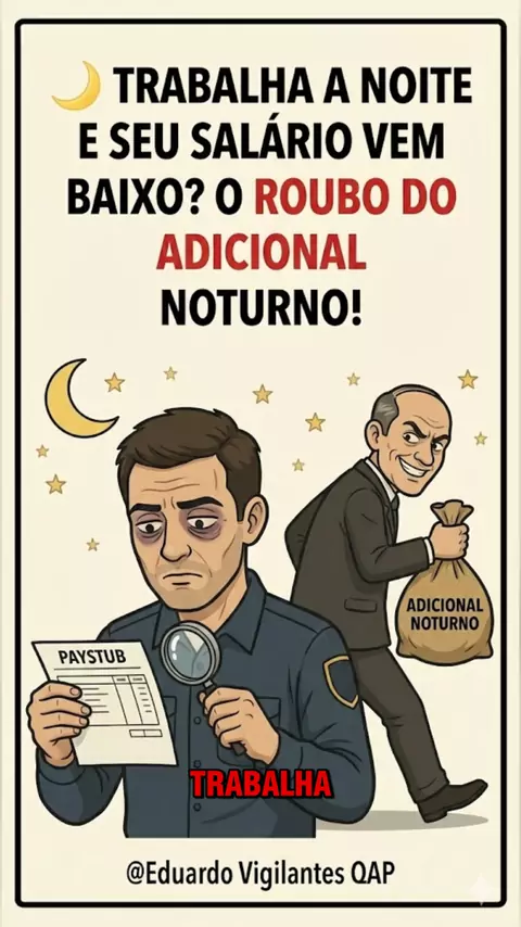🚨 O GOLPE DA MADRUGADA: TRABALHAR A NOITE E RECEBER MENOS! Guerreiro da noite, atenção! 🦉💸 O vídeo denuncia uma prática comum: o erro proposital no cálculo do Adicional Noturno e das Horas Extras. A lei diz que a hora noturna é menor (52min30s) e que o adicional vai até o fim do plantão (Súmula 60 TST). Mas muitas empresas "esquecem" disso e pagam a menos. Resultado: você perde sono, saúde e dinheiro. Isso é roubo! 🔥 Seu adicional noturno vem correto ou sempre falta?