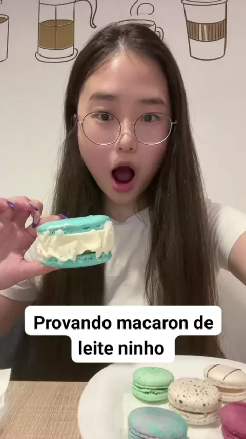 Priscila Ju provando Macaron de leite ninho #PriscilaJu