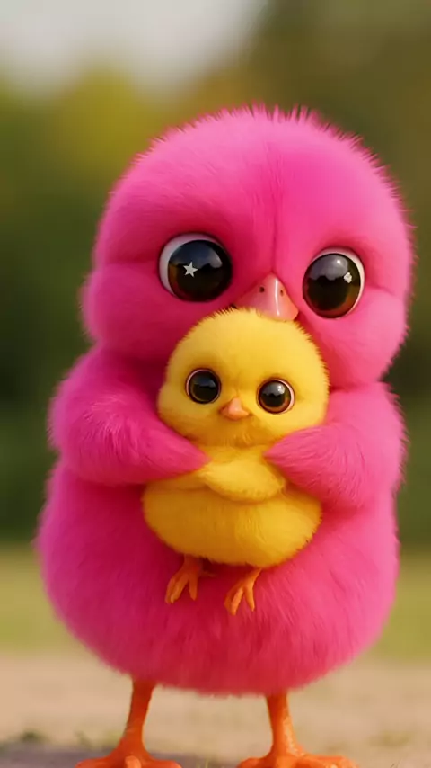Pintinho rosa fofinho segurando pintinho filhote amarelinho fofinho #pintinho #fofinho