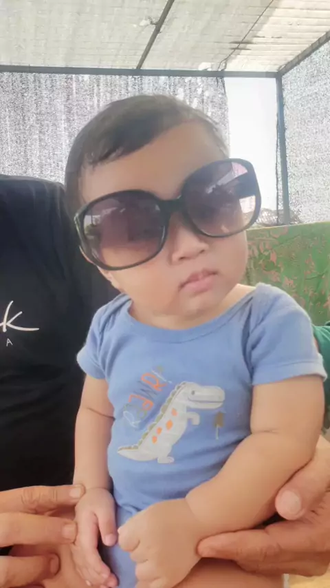 Pake kaca mata punya eyang...Aku ganteng kan😁🤭 #anaklanang #kacamata #bayi #DapatKoinMainGame