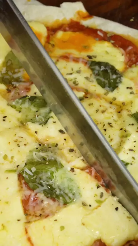 Pizza pronta em 10 minutos! Massa sem fermentação, bem levinha e crocante! 🍕 🍕 🍕 #receita #pizza #comida