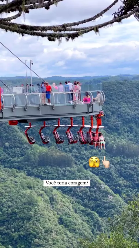 Você teria a coragem desse casal? 😱 Altura de 77 andares!🫣 📍Local: skyglass em Canela, Rio Grande do Sul, uma plataforma de vidro suspensa a mais de 360 metros de altura! Registro lindo da📸: @daricanela