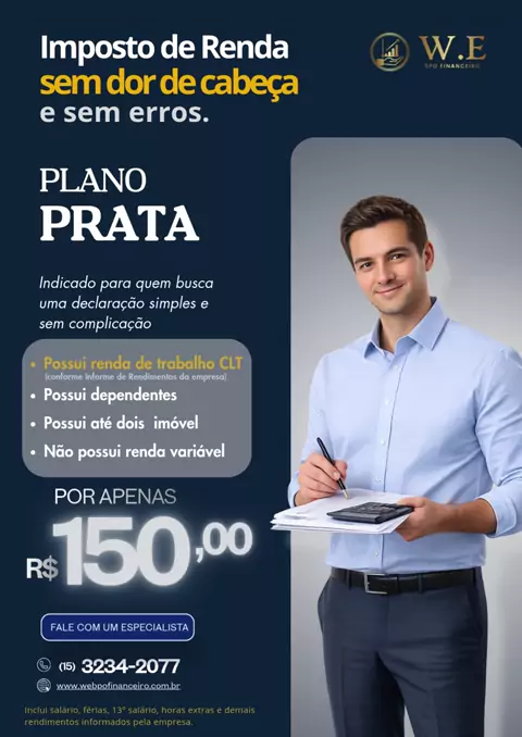 Plano Ouro - Declaração de Imposto de Renda - W.E BPO Financeiro. Seu Imposto de Renda mais completo, sem erros e com estratégia! 💎 Plano Ouro: Ideal para quem possui deduções e precisa de uma declaração detalhada e bem otimizada. 💰 Preço especial: R$ 300,00 Fale com um especialista e garanta a melhor declaração para você! 🔗 Saiba mais e agende seu atendimento: www.webpofinanceiro.com.br #ImpostoDeRenda #PlanoOuro #BPOFinanceiro #WEPofinanceiro #DeclaraçãoDeImpostoDeRenda