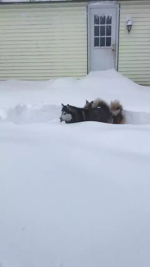 Cachorro se divertindo na neve