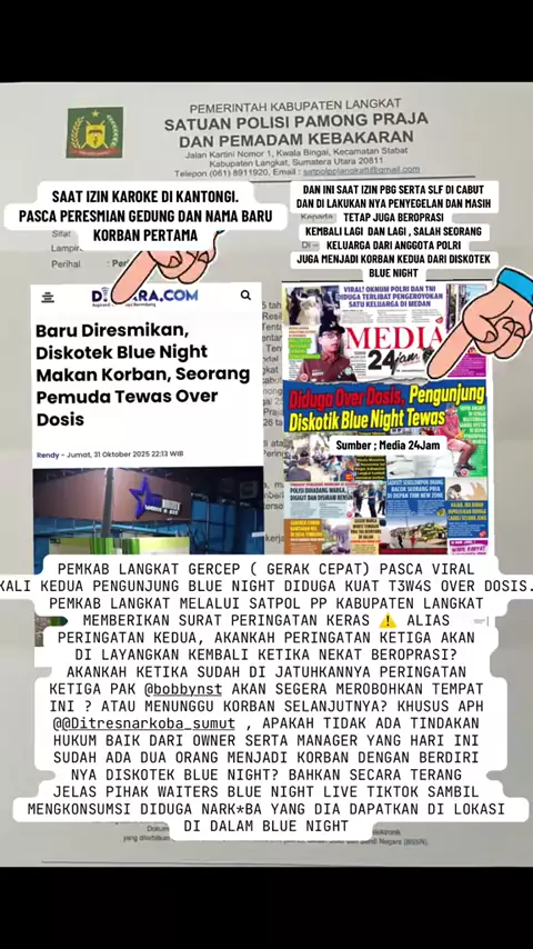 APARAT PENEGAK HUKUM KHUSUS NYA POLRES BINJAI , BELUM BERANI MENJALANKAN TUGAS NYA DALAM PENGAWASAN TEMPAT YANG MENJADI PEREDARAN GELAP NARKOTIKA. BEGITU JUGA DENGAN PEMKAB LANGKAT YANG HARI INI SAMPAI SAAT INI IZIN YANG MEREKA GUNAKAN MENYALAHI ATURAN TAK KUNJUNG DI TINDAK SURAT YANG DI LAYANGKAN HANYA SEBATAS FORMALITAS##pppppppppppppppppppppp#donggggggg#bluenight#KotaBinjai @REQ LAYAR ONLINE BLUENIGHT @👀👣🕵‍♂️ @Binjai Hitz @betrand tarigan @Bayu Oke @Doody Noura Irawan @paktar @b...