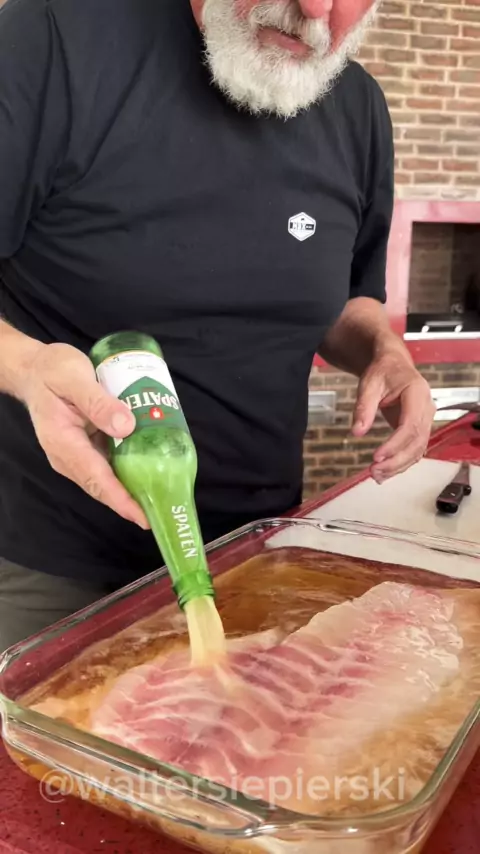 Filé de peixe marinado na cerveja 🐟🍺🧅🍅🌿🌶️🫑🦪🦀🍴 . . #spaten #receitacomcerveja #receita #peixemarinadocomcerveja #waltersiepierski