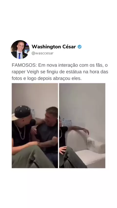 FAMOSOS: Em nova interação com os fãs, o rapper Veigh se fingiu de estátua na hora das fotos e logo depois abraçou eles.