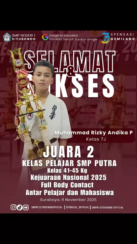 Testimoni orang tua Andika M. Rizky Andika Pratama Putra Siswa SMP Negeri 1 Situbondo. Terima Kasih atas testimoninya pak. Semoga Andika ke depannya dapat lebih berprestasi, maju dan berkembang. Tetap semangat Tetap berlatih Oss#kyokushinkaikarate#kyokushin#kyokushin_karate#pembinaanmentalkaratekyokushin#pembinaanmentalkarate