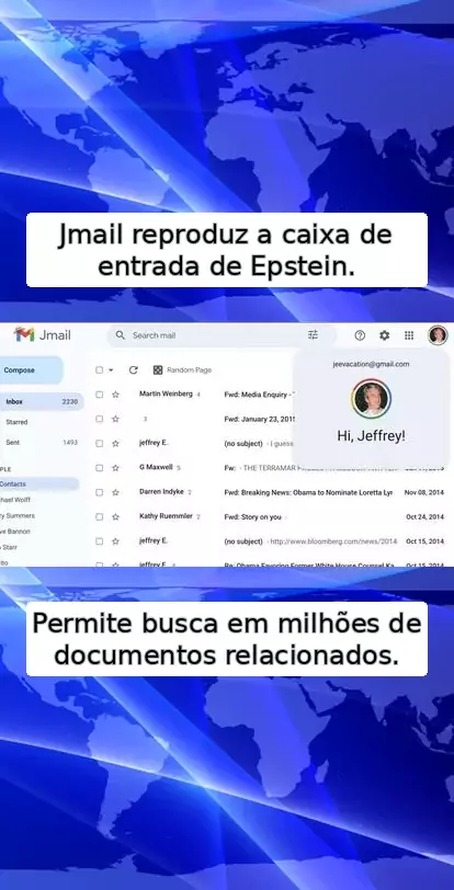Site Jmail permite acesso a e-mails de Jeffrey Epstein relacionados a escândalo sexual #Jmail #escândalo #criam