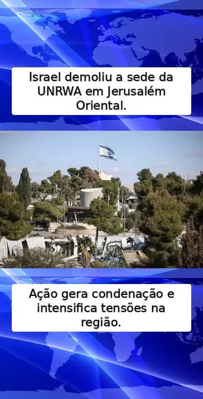 Israel destrói sede da UNRWA em Jerusalém Oriental, gerando condenação internacional #Israel #ONU #destrói