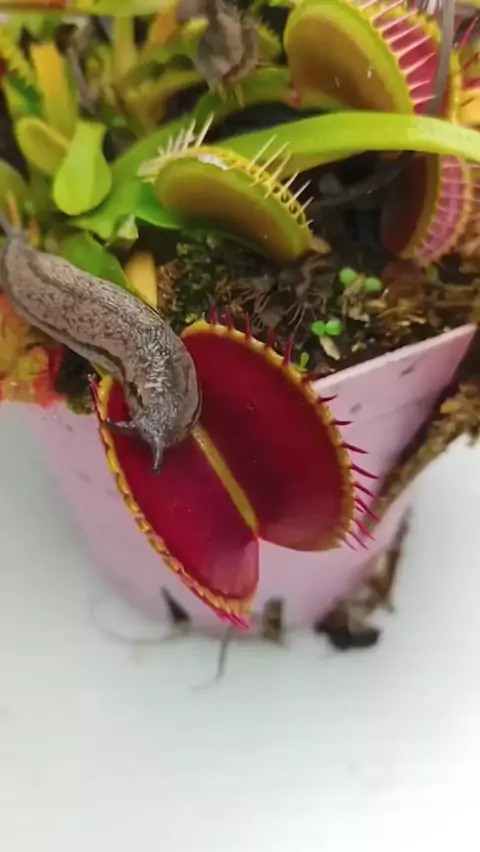 Slug going in a Venus fly trap 🪴⠀via interestingplant ()⠀follow @wildlifeplanet 💞⠀