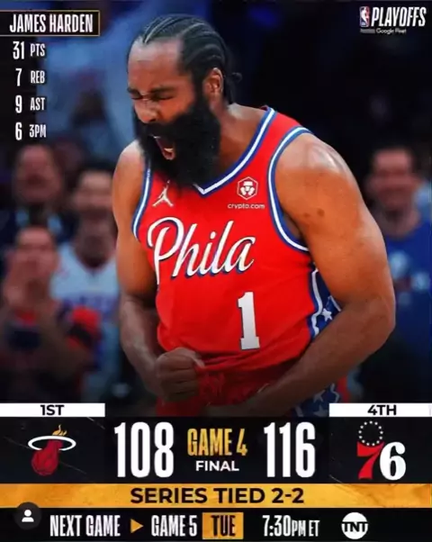 Os SIXERS, com James Harden inspirado na noite empatou a série com o HEAT em 2x2. . . . #playoffs #NBA #nike #basquete #Miami