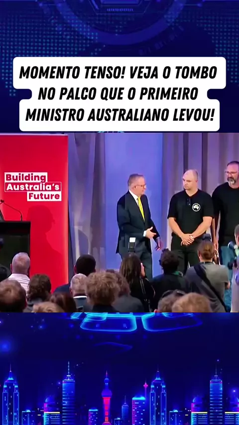 MOMENTO TENSO! VEJA O TOMBO NO PALCO QUE O PRIMEIRO MINISTRO AUSTRALIANO LEVOU! #noticias #News #jornalismo #reportagem #viral