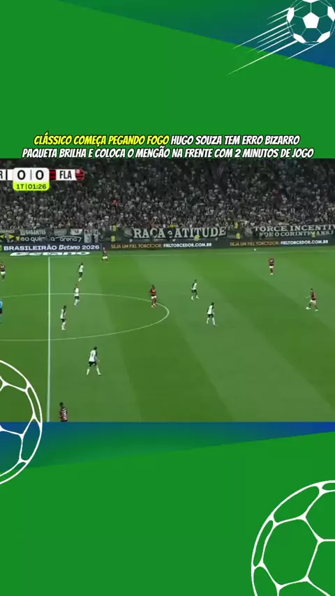 CLÁSSICO COMEÇA PEGANDO FOGO HUGO SOUZA TEM ERRO BIZARRO PAQUETA BRILHA E COLOCA O MENGÃO NA FRENTE COM 2 MINUTOS DE JOGO! #esporteviral #fofocadefutebol #CORINTHIANSxFLAMENGO #Brasileirão #esporte