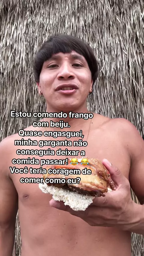 Estou comendo frango com beiju. Quase engasguei, minha garganta não conseguia deixar a comida passar! 😂 Você teria coragem de comer como eu?