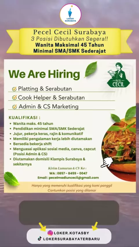 Lowongan Kerja Pecel Cecil Surabaya #lowongankerjasurabaya#lokersurabayaterbaru#infokerjasurabaya#carikerjasurabaya#lokerkitchen#lokercookhelper#lokeradmin#lokercustomerservice#lokerserabutan#lokersma#lokersmk#lokerfnbsurabaya#lokerkuliner#lokersmasurabaya#lokersmksurabaya#lokersemuajurusan