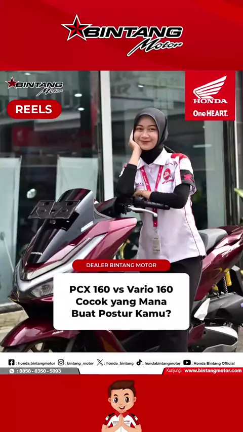 Tinggi badan kamu berapa cm? Vario 160 atau PCX 160, mana yang lebih pas? 🎬 Jawabannya ada di video ya! . Jangan lupa LIKE 👍, SHARE, dan FOLLOW biar nggak ketinggalan tips & info motor Honda terbaru! . ℹ️ Untuk info pembelian sepeda motor, hubungi kami: 📱 0858-8350-5093 🌐 www.bintangmotor.com .#Vario160#PCX160#HondaVario#HondaPCX#MotorHonda#BintangMotor#DealerHonda