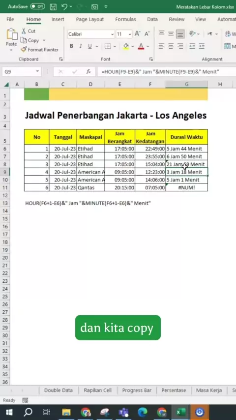 BACA CAPTION BIAR LEBIH PAHAM 🔥 Disini kita menghitung durasi waktu dengan formula HOUR & MINUTE, cara nya jam kedatangan di kurang jam berangkat. Untuk waktu yg melewati jam 12 malam akan muncul error, jdi kita tambahkan +1 yg artinya 24 jam agar tidak error. Berikut formula nya =HOUR(F6+1-E6)&" Jam "&MINUTE(F6+1-E6)&" Menit" . Silahkan diskusi di komentar ya. . #excel #excelindonesia #waktuexcel #levelup