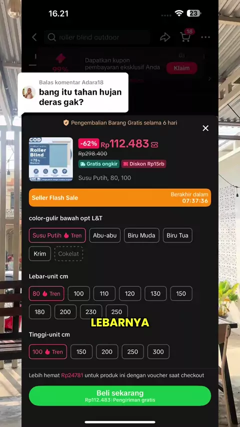 Membalas @Fun with Zefan Jangan heran kalau tirai ini sering muncul di mana-mana ๐Ÿ˜ฎโ€๐Ÿ”ฅ Dipakai di rumah, cafรฉ, resto, sampai area outdoor karena fungsinya kepake banget. Bahan kuat, tahan hujan & panas, jatuhnya rapi, dan bikin tampilan langsung naik kelas โœจ Bukan cuma soal nutup, tapi soal kenyamanan, keamanan, dan aesthetic. Sekali pasang, kamu bakal ngerti kenapa banyak yang rekomendasiin ๐Ÿ‘ Sekarang lagi promo, jadi mumpung ada kesempatan, manfaatin sebaik mungkin sebelum harga normal lagi ...