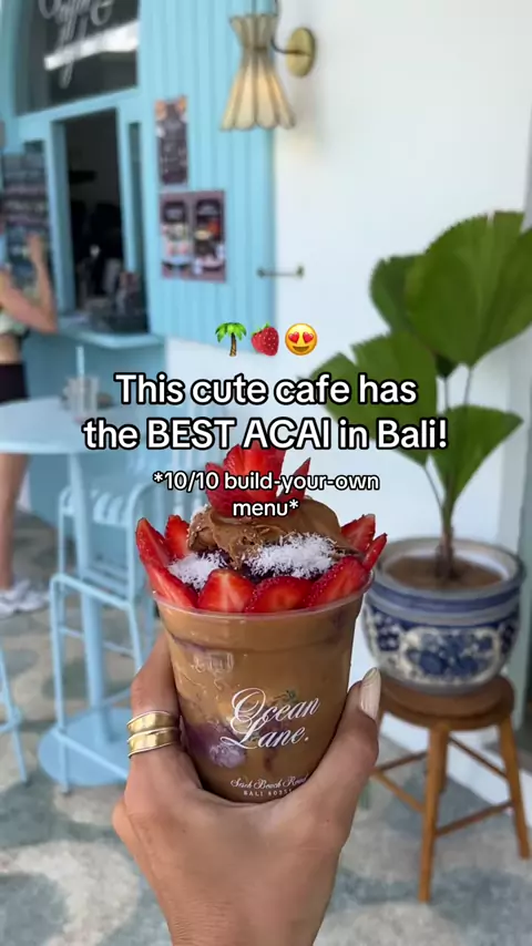 My favorite (and the most cute and aesthetic) matcha and coffee shop in Bali has the island’s BEST ACAI if you ask me! 🤤🫶🏼 Made from 100% pure acai and topped with all your favorite toppings, I’m obsesseddd 🌺🍓 📍 Ocean Lane, Seseh (close to Canggu) #bali #baliindonesia #balifood #acaibowl #baliguide best smoothie bowls in Bali breakfast canggu acai bowl brunch where to eat best cafes in canggu