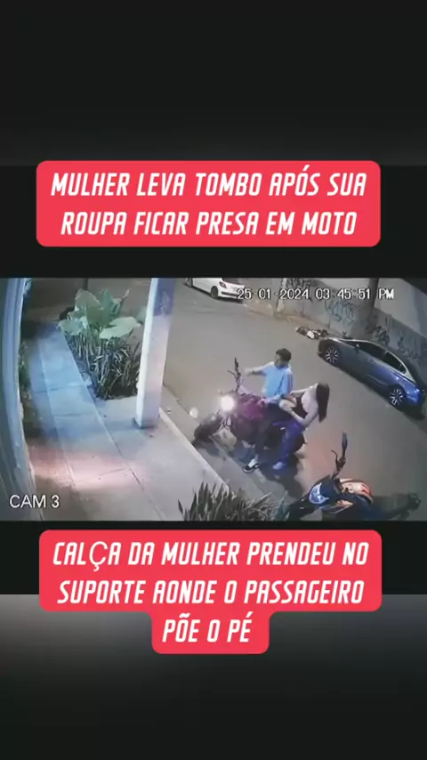 MULHER CAI AO DESCER DE MOTO #hilario #moto #queda