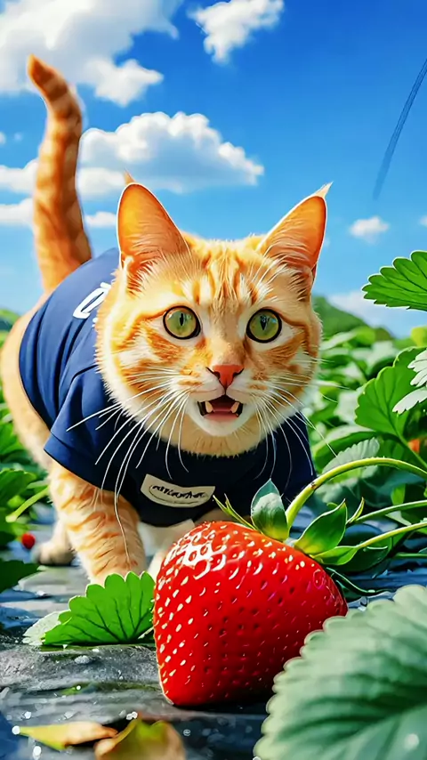 Wow, what a big strawberry.😍😍#pet #cat #ai