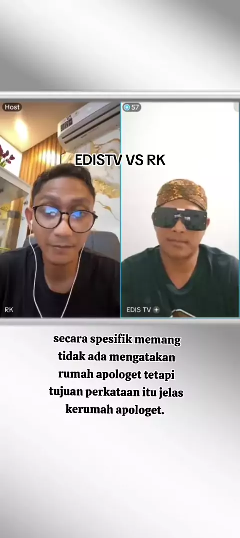 secara spesifik memenag tidak mengatakan rumah apologet tetapi dari narasi rk itu kita mengetahui kemana arah bicaranya yaitu ke pendirian rumah apologet yg didirikan edis sidabutar atau edistv tetapi bang rk selalu mengelak dengan berkata adalah saya mengatakan itu rumah apologet.. yang kedua rk mengelak untuk bahas apakah Yesus Tuhan atau apakah Yesus punya Tuhan padahal edistv sudah datang ke room bang rk ya tinggal bahas aja di room itu kalo maslah mau ada penengah atau juri tinggal naikka...