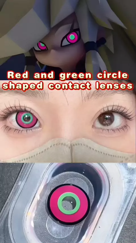 Red and green circle-shaped contact lenses #AnimeContacts#CosplayContacts #CosplayMakeup #ComicPie
