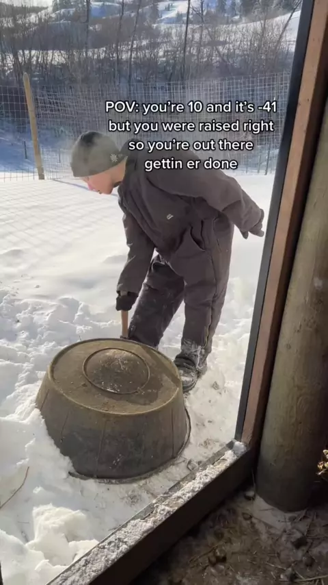 O melhor pequeno fazendeiro. # CountryBoy # rancholife # congelando # inverno