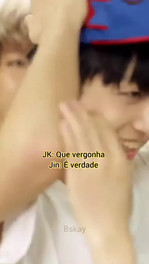 O Jin e o Jungkook tinham que tirar o boné um do outro apenas usando o rosto... Aí foi o Jin tentando beijar e Jungkook cuspindo no Jin kkkk eu morro com esses meninos 😅 #BTS #ARMY #foryou #jimin #kwai