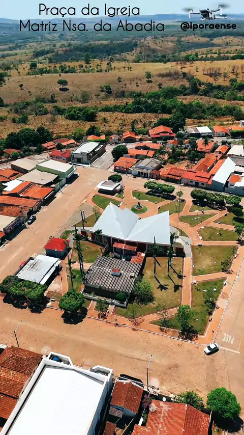 IVOLÂNDIA GOIÁS, PROJETO VISÃO AÉREA - PRAÇA DA MATRIZ NOSSA SENHORA D'ABADIA. Sobrevoamos a praça da Igreja Matriz de Nossa Senhora d'Abadia, em Ivolândia, o olhar se encanta com um dos símbolos mais marcantes da fé e da identidade do município. Emoldurada pela praça, a igreja se destaca não apenas pela sua importância religiosa, mas também pela originalidade de sua arquitetura, o templo foi projetado no formato de uma Bíblia aberta, representando a Palavra de Deus sempre presente...