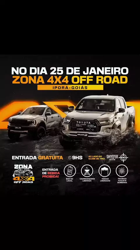 IPORÁ GOIÁS, PROJETO VISÃO AÉREA - 2º EDIÇÃO ZONA 4X4 OFFROAD. Hoje, 25/01/2026 a partir das 09:00 no loteamento Califórnia em Iporá acontecerá a segunda edição do Zona 4x4 OFFROAD. Venha prestigiar...
