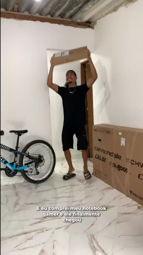 E eu que comprei um notebook gamer e ele finalmente chegou 🤩🙆🏻#viral #comedy #estreladocarnavalkwai #notebook #bike