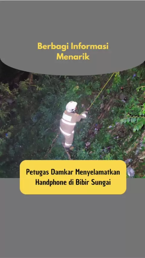 Petugas Pemadam Kebakaran membantu warga mengambil handphone yang terjatuh pada bibir sungai. #handphone #DAMKAR #jakarta
