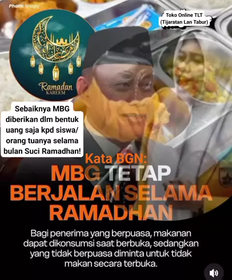 Ayo kritik rencana pembagian MBG saat siang Ramadhan di daerah mayoritas Muslim! Krn itu rawan disalahgunakan siswa-siswi nakal yg usia di atas 9 thn yg masih labil dlm berpuasa, itu sama aja seperti buka ruang bagi mreka utk tak puasa, pdhl seharusnya kita memotivasi generasi kita agar jadi pribadi yg lebih baik&mulia. Sy usulkan 2 solusi: ✓MBG dibagikan dlm bentuk uang aja kpd siswa-siswi/org tua. ✓Jam sekolah diundur ke jam 9/10pagi &pulang jam 3sore, MBG dibagikan sore utk buka Puasa #Viral