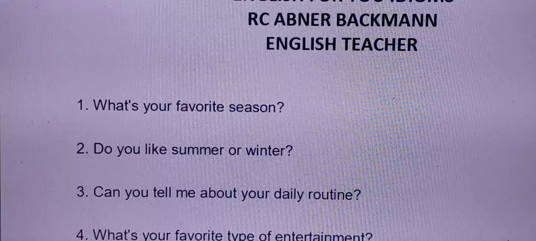 English For you Idioms. Abner Backmann. English. Teacher. English Conversation. Questionado and no answers. Se. vc gosta e apoia esse trabalho deixe seu LIKE e me siga.... Também deixe sua resposta a uma dessas perguntas.