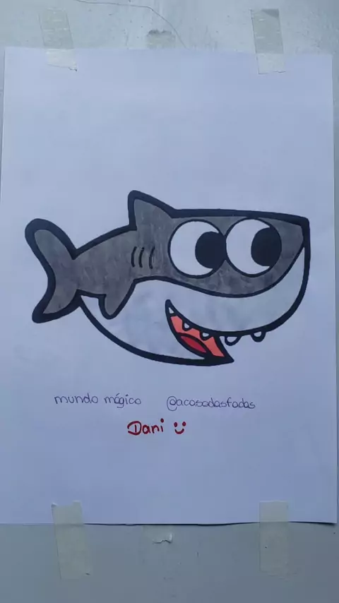 Tubarão fofinho desenho animado infantil pintando desenhos com tinta e canetinhas brincadeiras para crianças kids #tubarão #animais #desenho #Desenhos #desenhoss