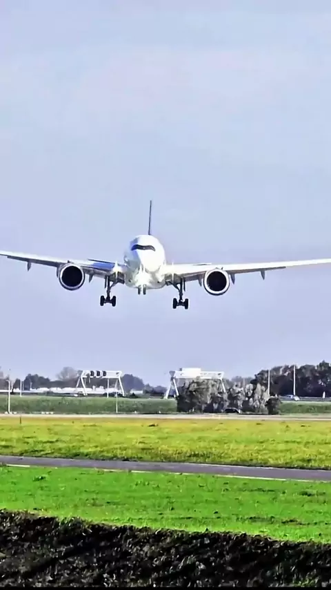 Detik-Detik Pesawat Airbus A350 diterjang angin saat mendarat #aviation #penerbangan #Pesawat